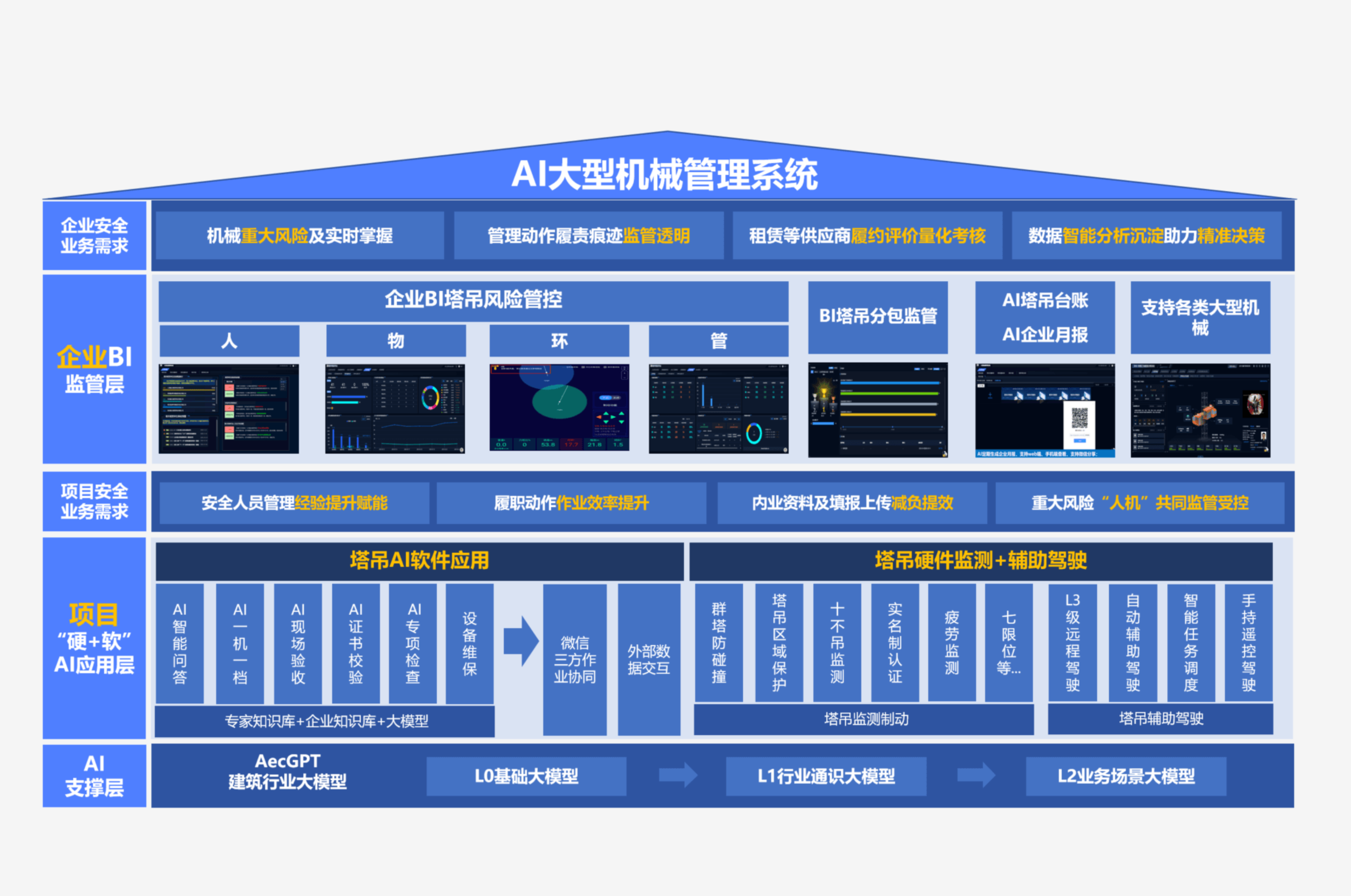 项企一体生产安全决策系统以项企一体、软硬一体为导向,聚焦危大工程、大型机械设备、重大安全风险、视频监控,人员管理、教育培训等安全管理重点关注内容,结合(人-物-环-管)智能物联、AI等新技术应用,实现数据来源多元化、业务管理数字化、重大风险可视化、安全管理精细化的安全穿透式AI监管。 |