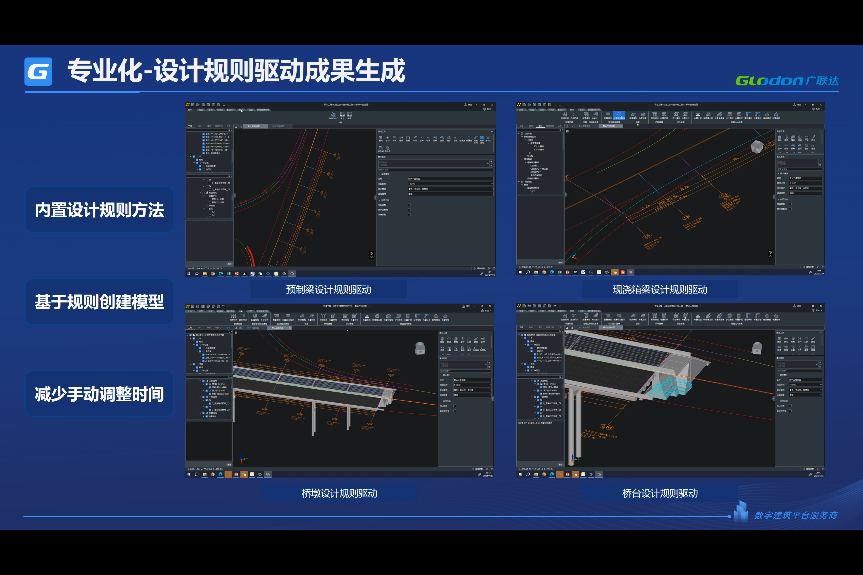 1、符合习惯的设计交互体验及设计过程,满足从方案、建模到出图 2、目前可以支持预制梁梁板布置图,常见公路预制梁上下部结构出图 (利用桥绘通接口)